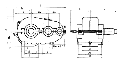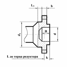| Редуктор | Зацепление | L, не менее | l | K | B | d (пред. откл. по F7) | d1 (пред. откл. по e8) | ||